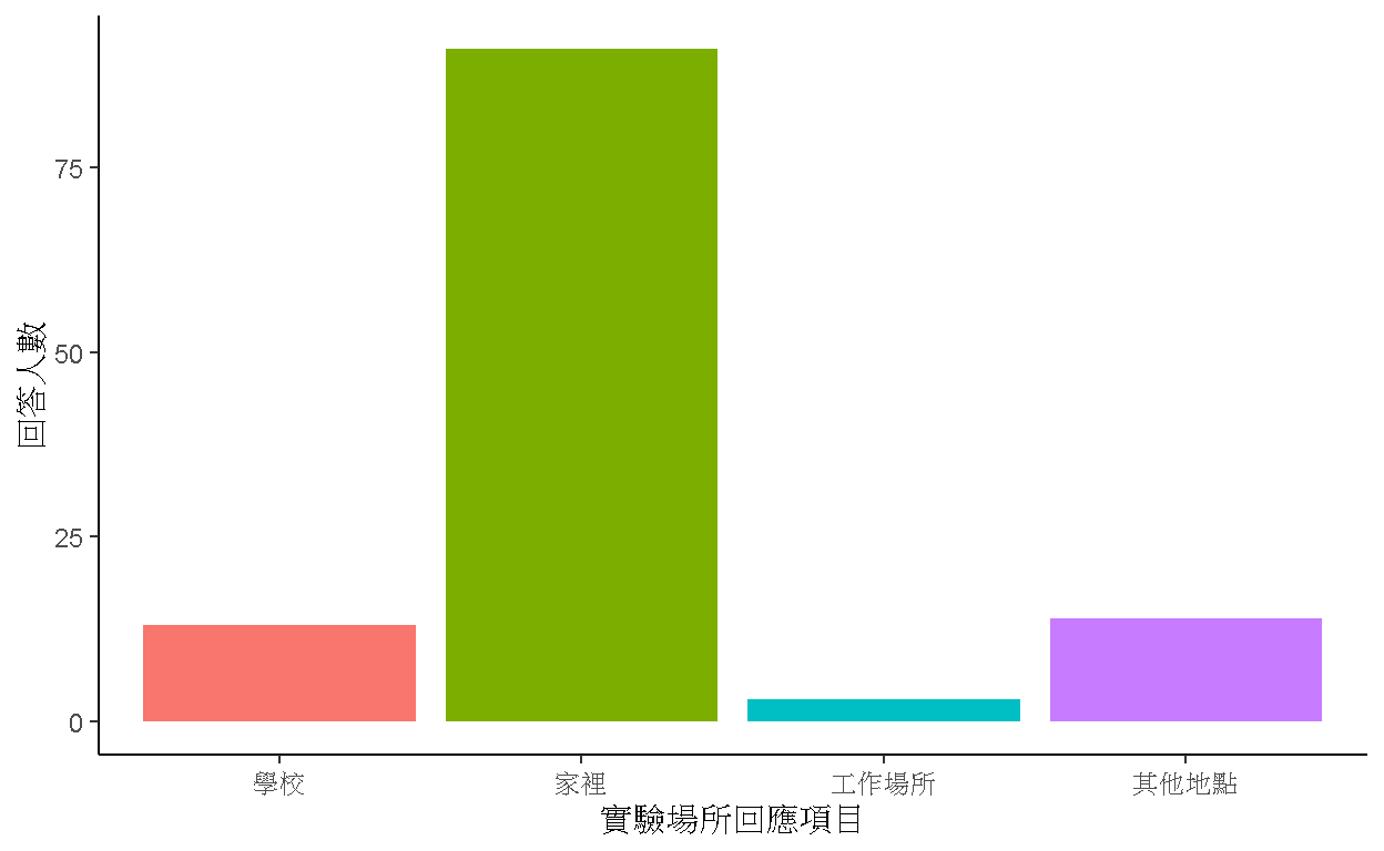 人直接跳過最後檢測題。根據最後檢測題,參與者進行實驗的場所統計如下圖: