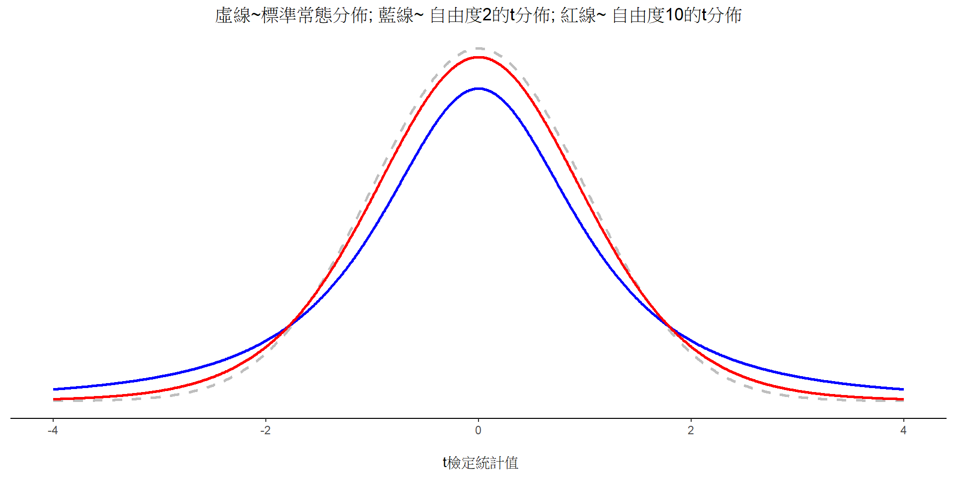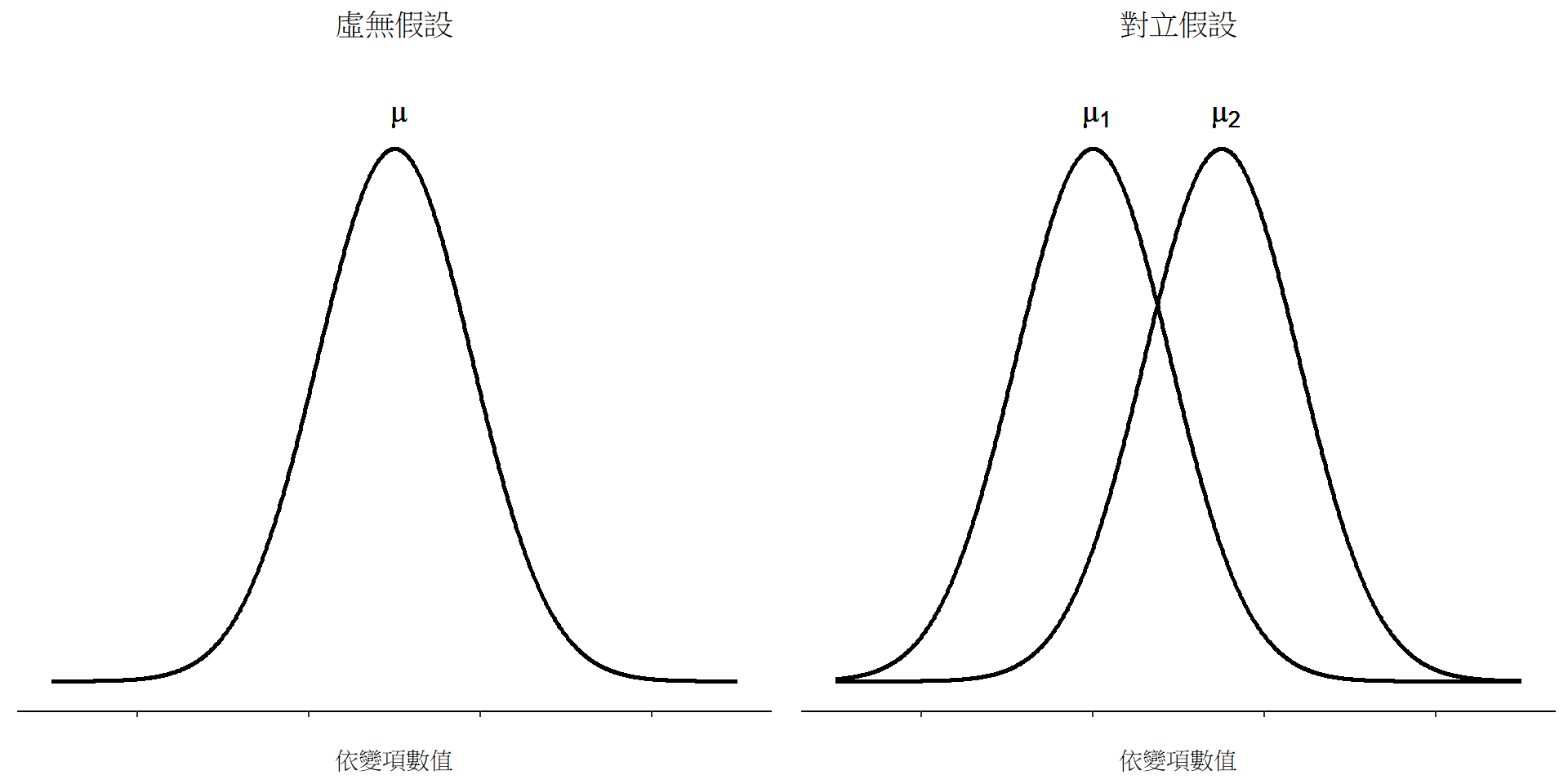 | t統計值 | \(t=\frac{\bar{X}_1-\bar{X}_2}{SE(\bar{X}_1-\bar{X}_2)}\) | \(t=\frac{\bar{X}_1-\bar{X}_2}{SE(\bar{X}_1-\bar{X}_2)}\) |